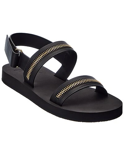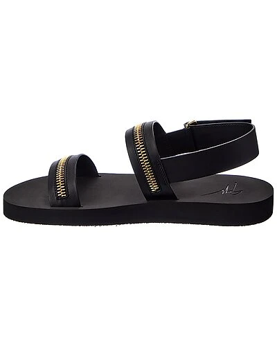 - Balboa Leather Sandal in black leather and gold-tone hardware with zipper trim