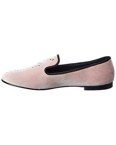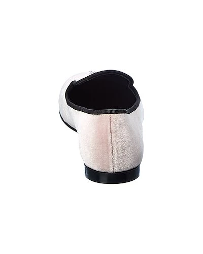 - Dalila Velvet Loafer in beige velvet with crystal embellishments and grosgrain trim