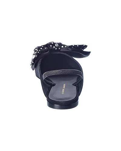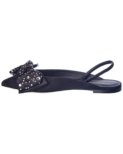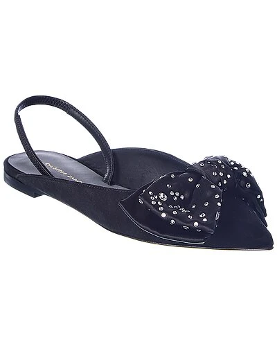 - Johanna Crystal Suede Flat in black suede with bow embellishment and rhinestone accents
