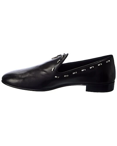 - Kevin Leather Loafer in black leather and silver-tone hardware with logo accent