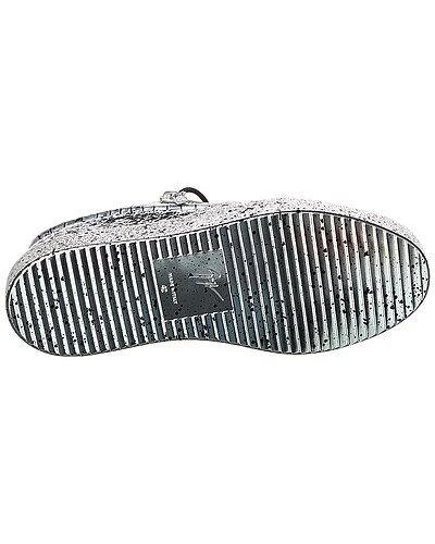 - May London Croc-Embossed Leather Sneaker in gold and black croc-embossed leather and gold-tone hardware with zipper accents