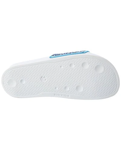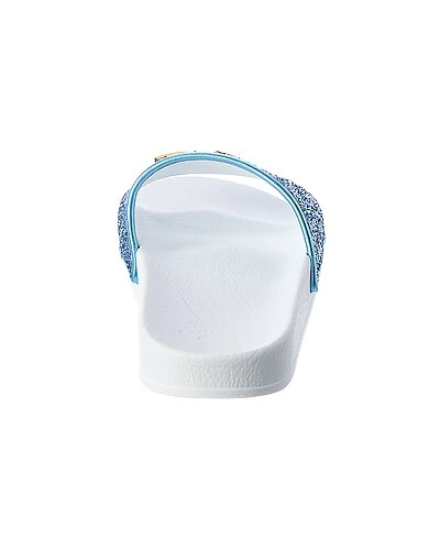 - Newlaburela Leather Slide in metallic blue leather and gold-tone hardware with glitter design and logo accent