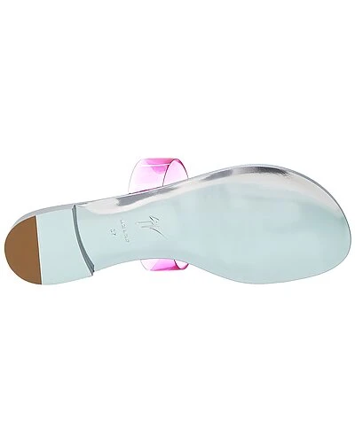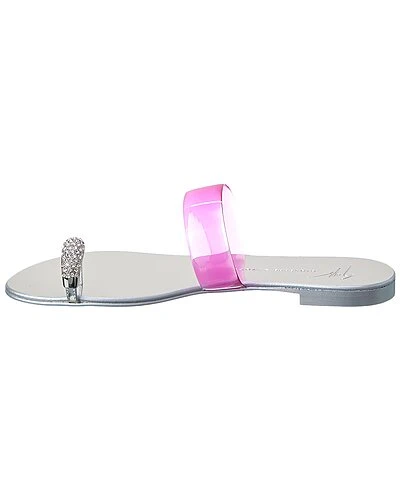 - Rock Vinyl & Leather Sandal in pink transparent vinyl and silver leather with crystal-embellished toe