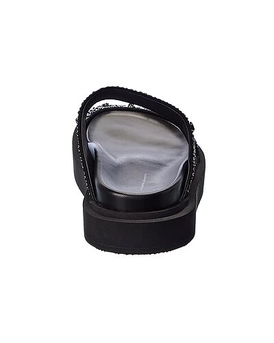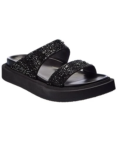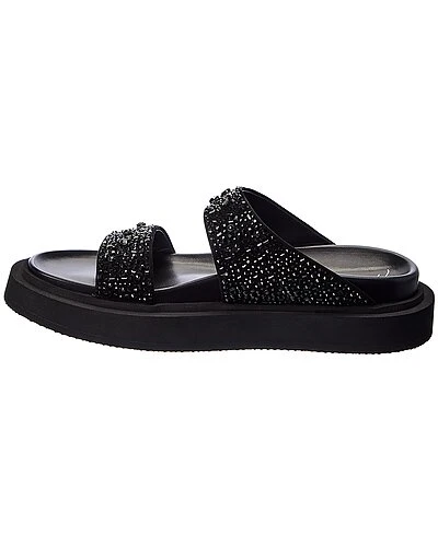 - Ryan Suede Platform Sandal in black suede and silver-tone hardware with crystal embellishments