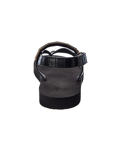 - Sandiego Croc-Embossed Leather Sandal in black croc-embossed leather and gold-tone hardware with logo accents