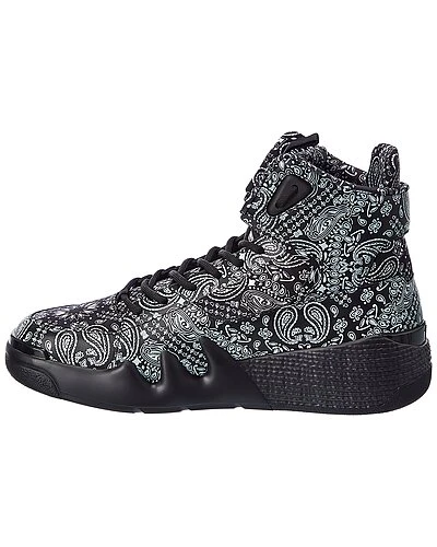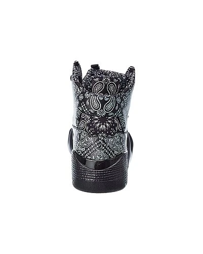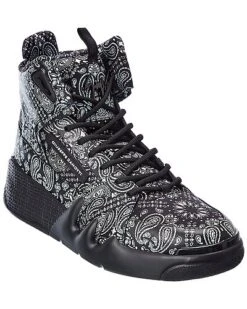 - Satin & Leather Sneaker in black printed satin and leather with logo accents