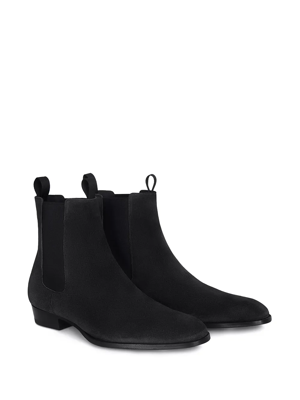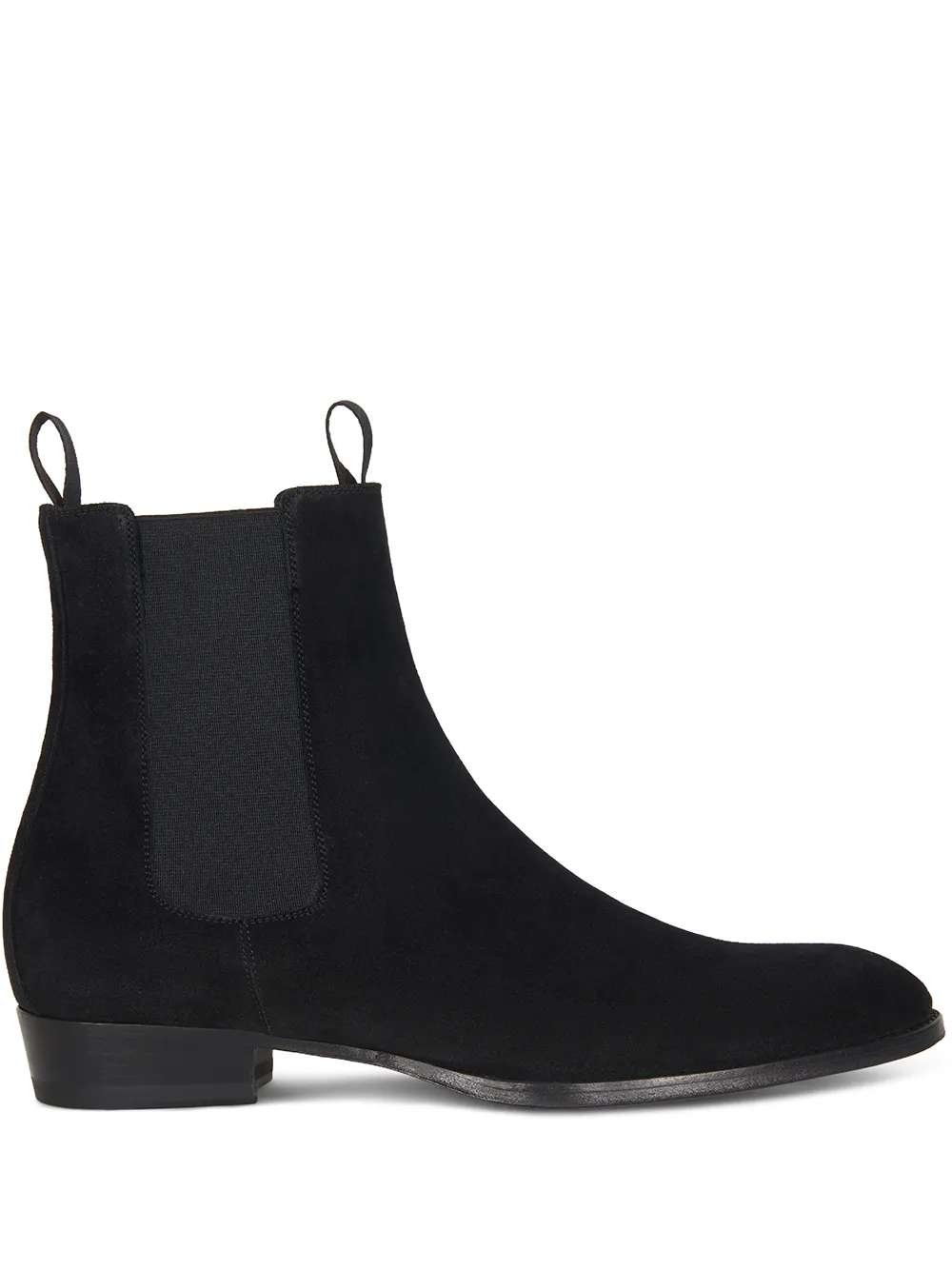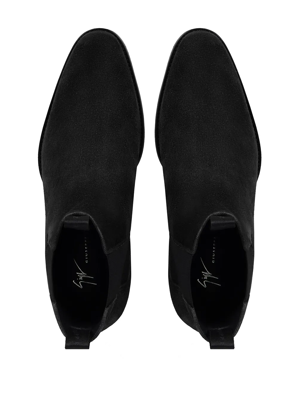 Giuseppe Zanotti is a designer that charmed the fashion world with a design approach that is visionary and always innovative. Made from black suede and two pull tabs with a logo – one at the back and one at the front – these Enfield Chelsea boots are a good example of his iconic style.