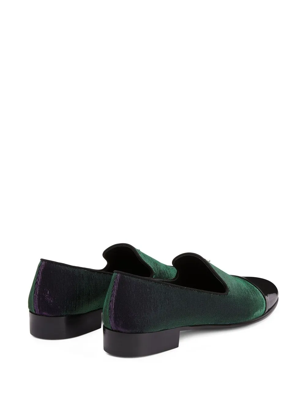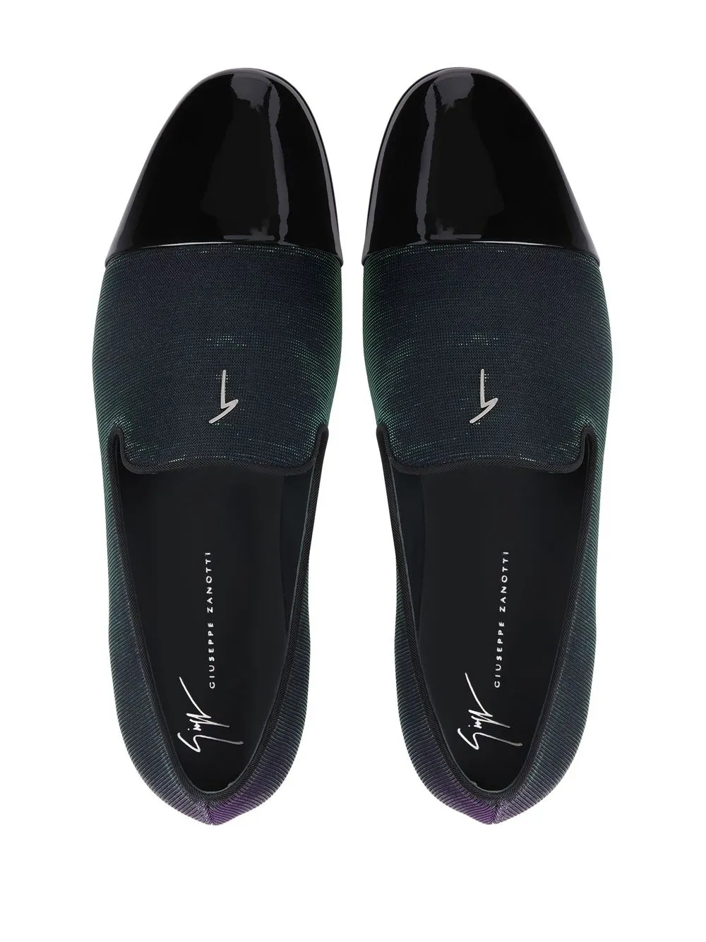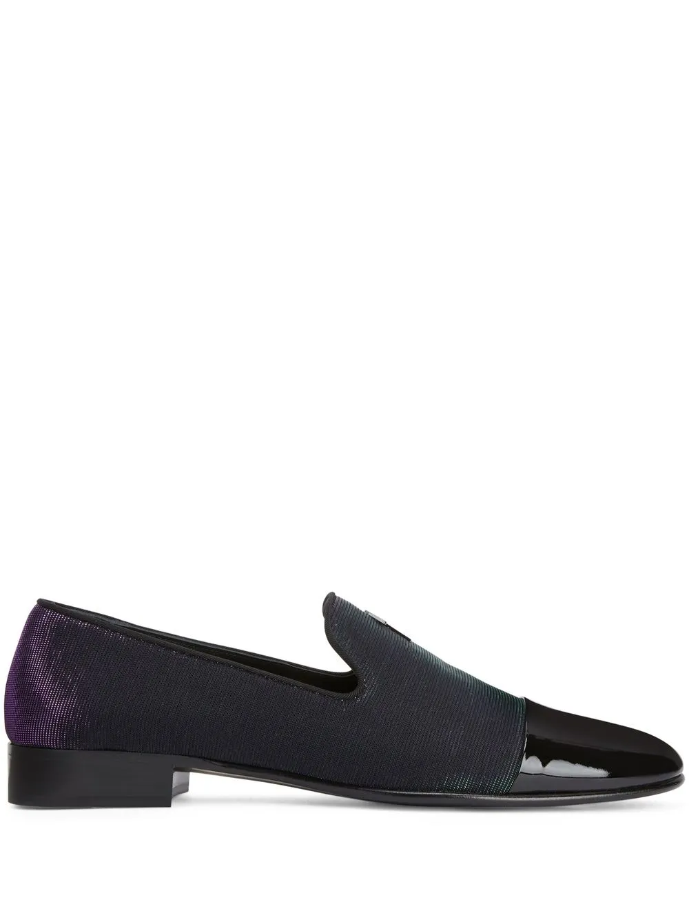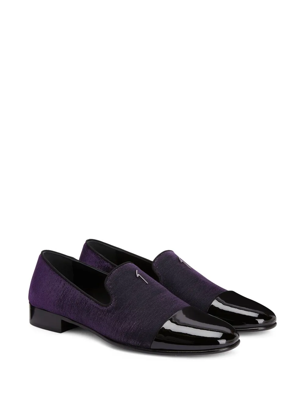 Lewis Cup loafers from Giuseppe Zanotti featuring black, purple, leather, patent leather, logo plaque, almond toe, branded insole and flat rubber sole.
