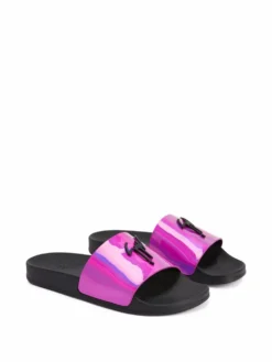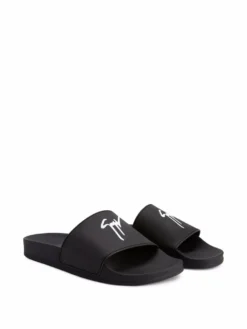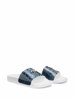 Men Giuseppe Zanotti Brett Crocodile-embossed Metallic Sliders