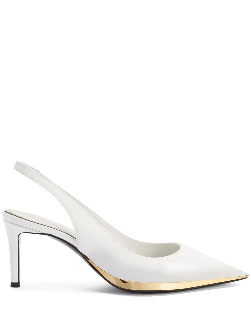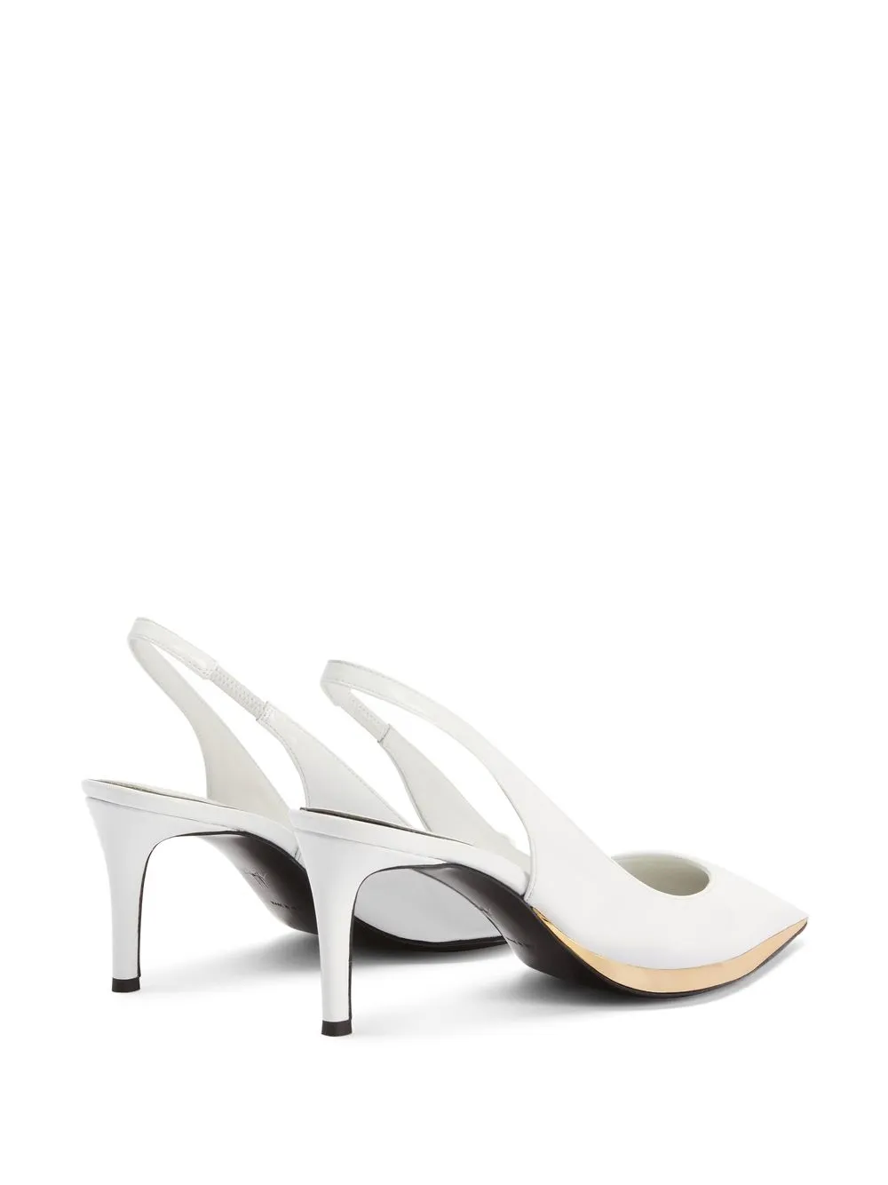 70mm pointed leather pumps from Giuseppe Zanotti featuring white, leather, pointed toe, slingback strap and mid heel.