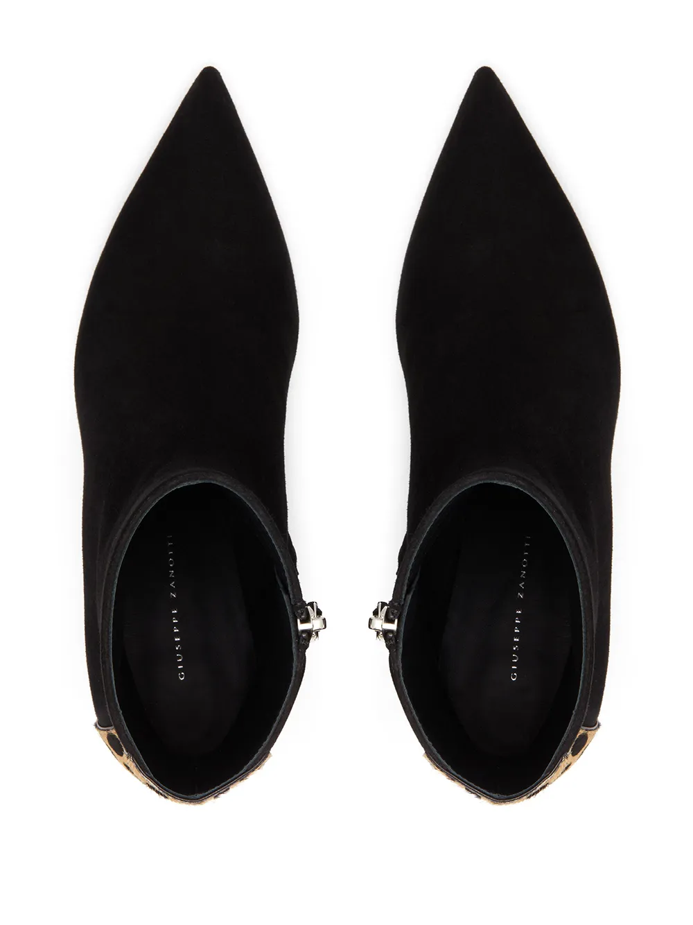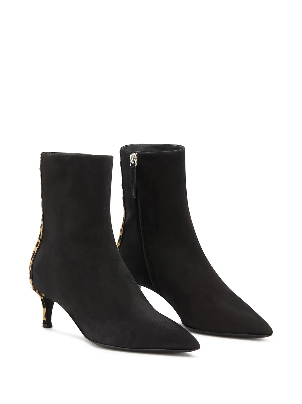 Adding bold twists to classic silhouettes is a signature Giuseppe Zanotti style. Constructed from leather, these Amal Feline 50 boots are distinguished by the bold leopard print panel to the rear. Sitting on a kitten heel, this pair is finished with a sleek pointed toe.