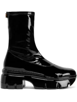 Apocalypse ankle boots from Giuseppe Zanotti featuring black, high-shine finish, round toe, flat sole and side zip fastening.