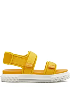 Yellow and white Blabber Gummy sandals from Giuseppe Zanotti featuring a round toe, a touch strap fastening, a slingback ankle strap, a branded insole, a panelled colour block design and a Blabber rubber sole.