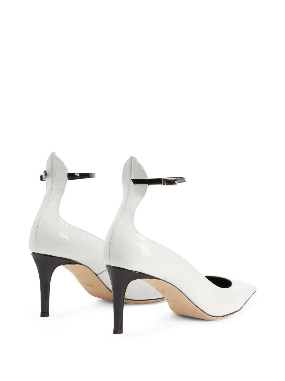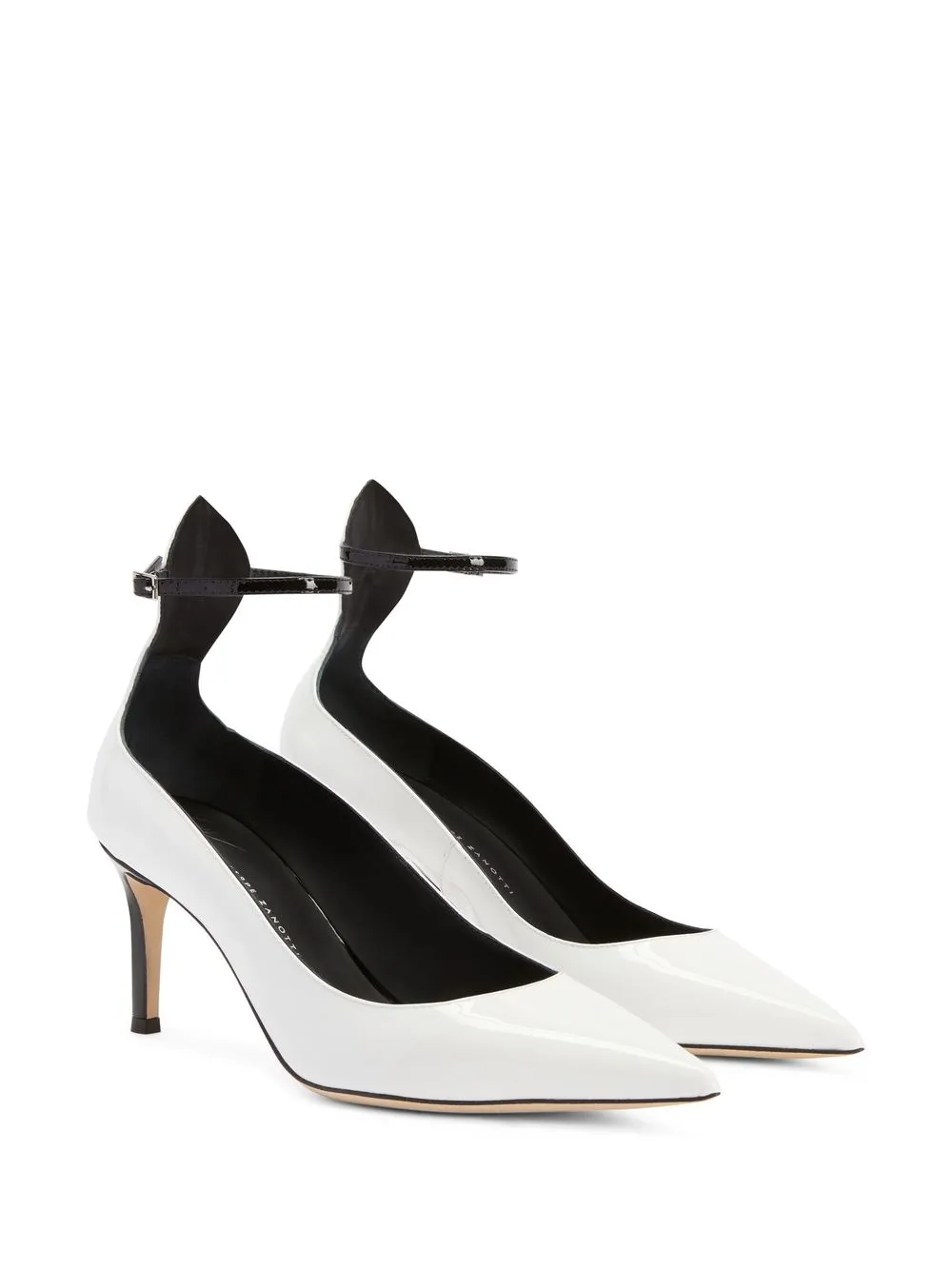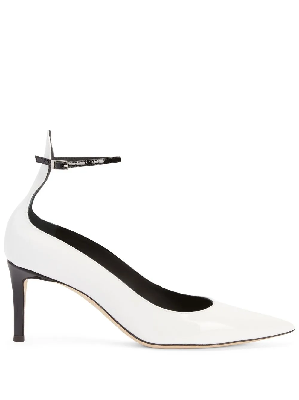 Cohralise 70mm leather pumps from Giuseppe Zanotti featuring white, leather, branded insole, pointed toe, buckle-fastening ankle strap and mid heel.