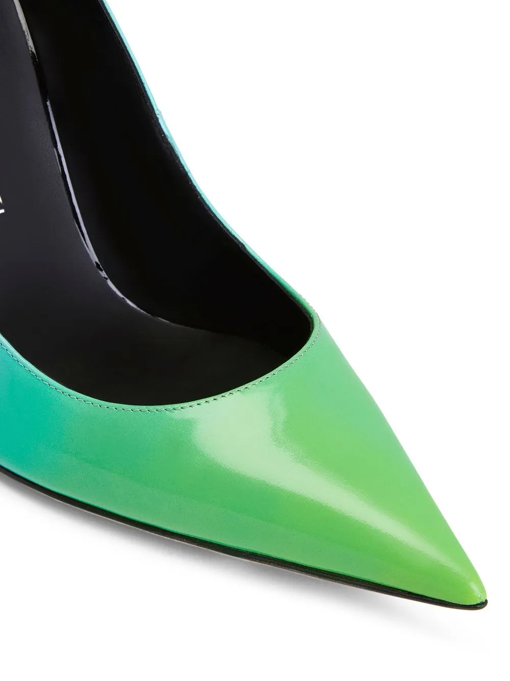 Cohralise ombré pumps from Giuseppe Zanotti featuring bright green, leather, ombré effect, patent finish, buckle-fastening ankle strap and pointed toe.
