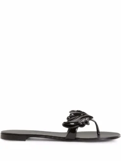 Black Cruel patent-effect flip flops from Giuseppe Zanotti featuring branded leather insole, thong strap, open back, slip-on style, flat leather sole and patent effect.