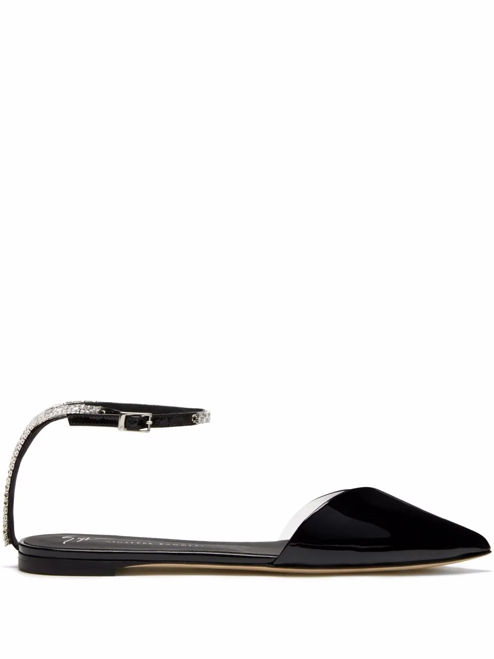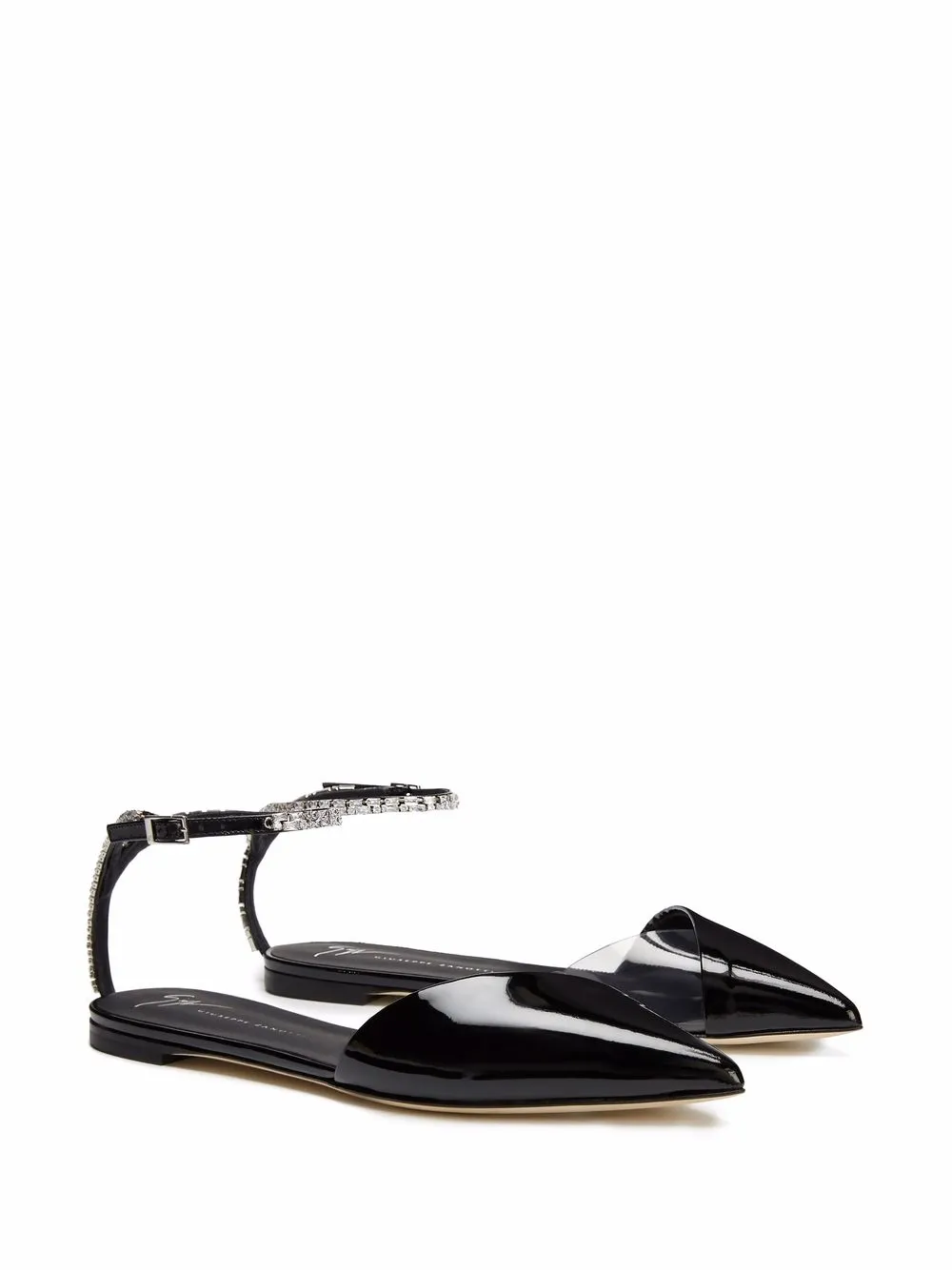 Transparent panelling creates a contemporary feel for these Fonteyn pointed pumps from Giuseppe Zanotti. At the rear, crystal embellishment speaks to the brand’s inspiration from the craftsmanship behind fine jewellery.