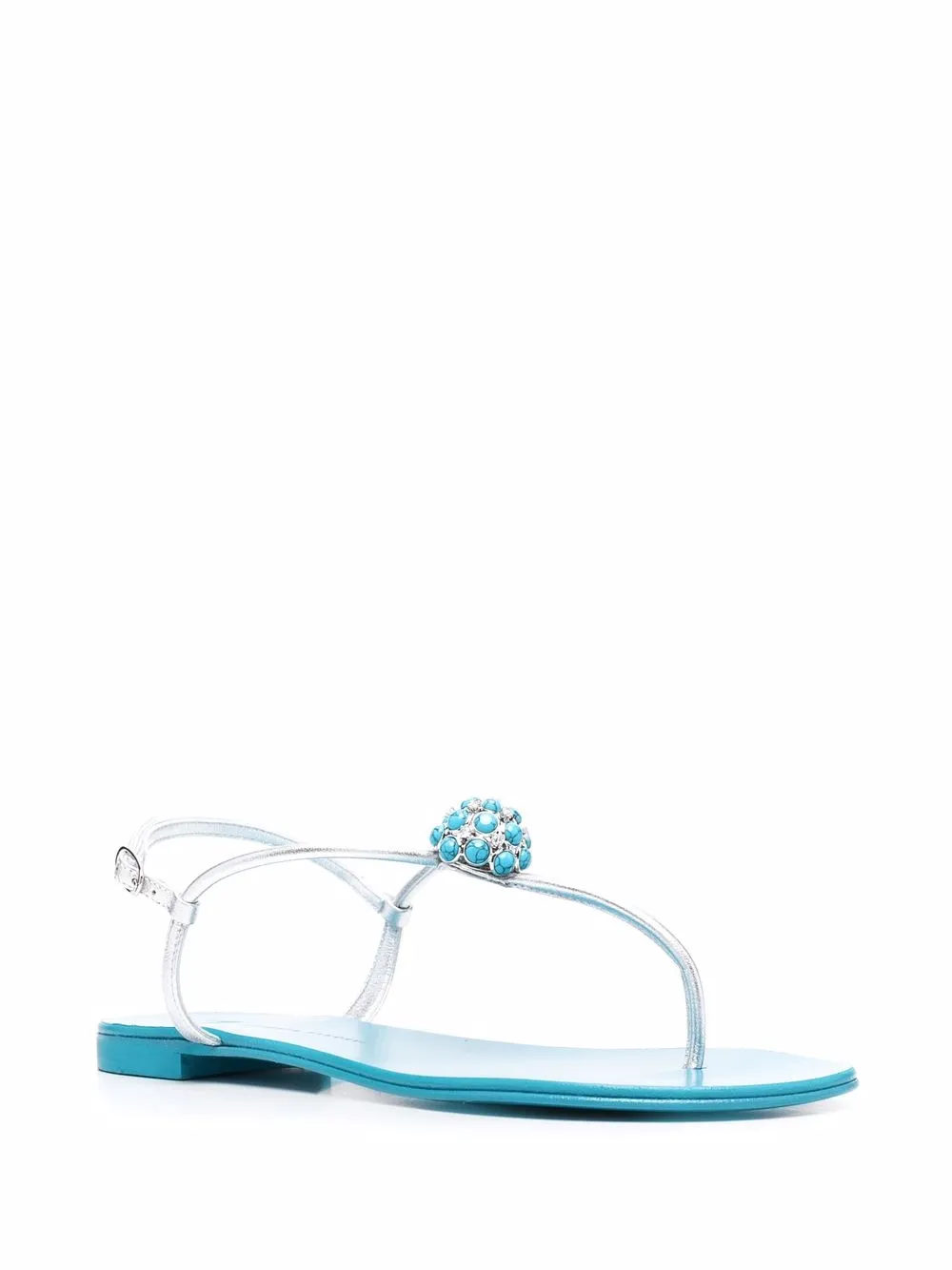 Sky-blue/silver-tone leather gem-embellished open-toe sandals from Giuseppe Zanotti featuring gem embellishment, open toe, low heel and metallic effect.