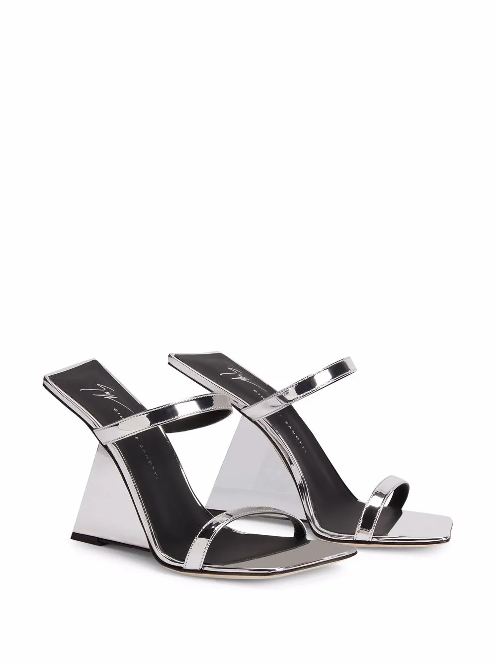 Silver leather Lilii Borea double-strap sandals from Giuseppe Zanotti featuring open toe, double-strap design, wedge heel and high sculpted heel.