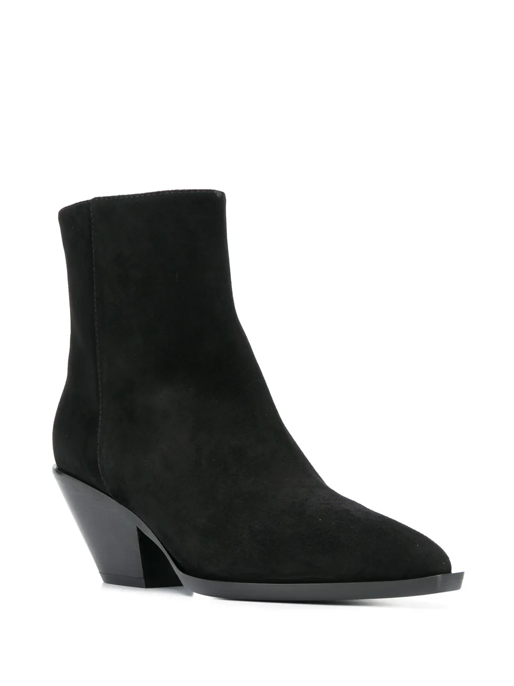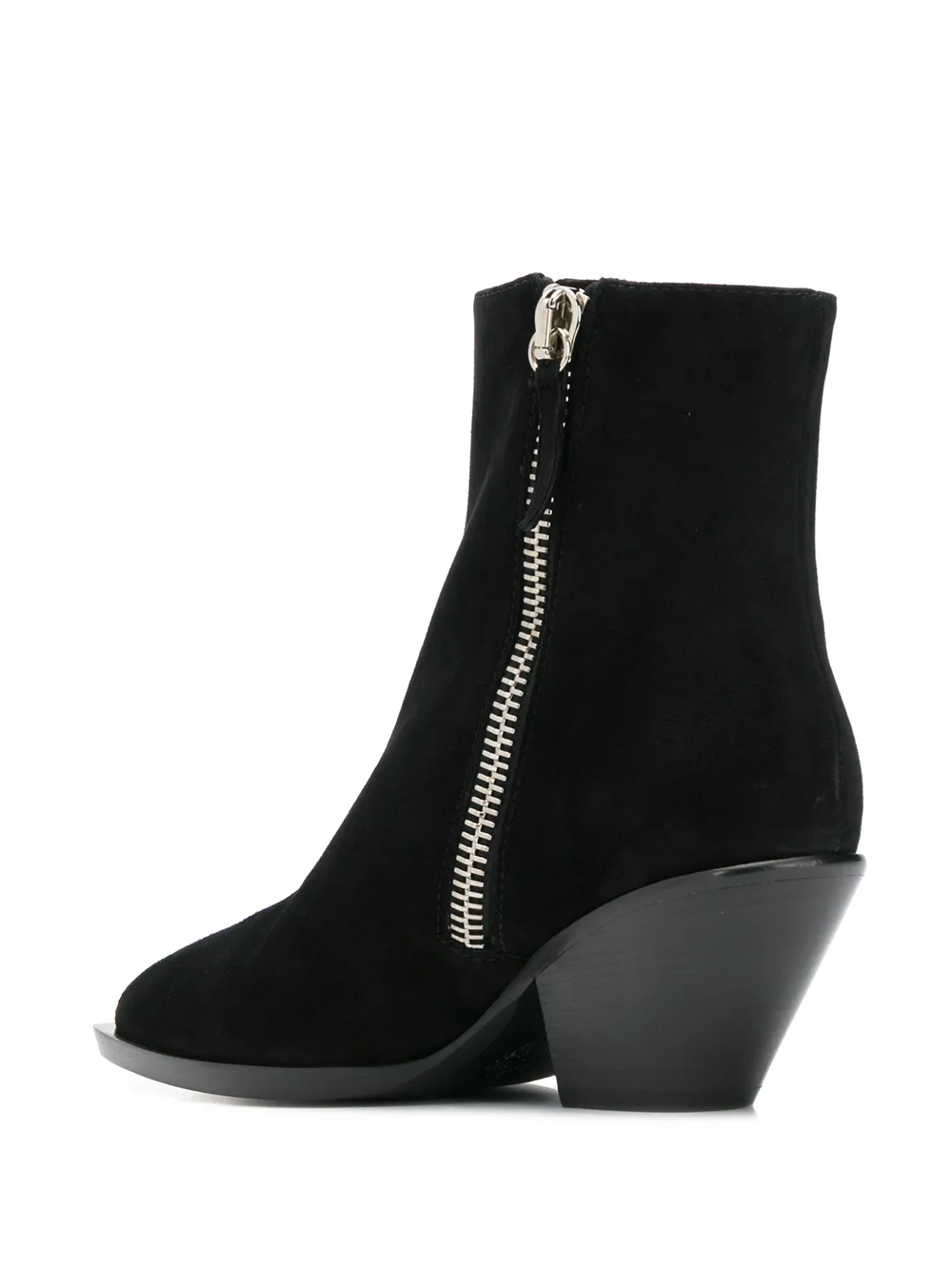 Black leather side zip fastening boots from Giuseppe Zanotti featuring a pointed toe, a low block heel, stitching details and silver-tone hardware.