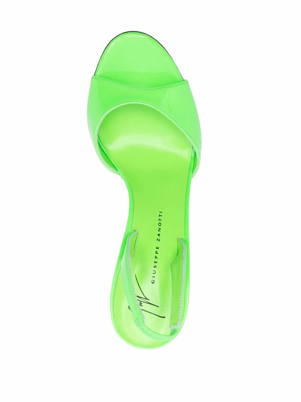slingback open-toe sandals from Giuseppe Zanotti featuring fluorescent yellow, leather, slingback strap, open toe and high heel.