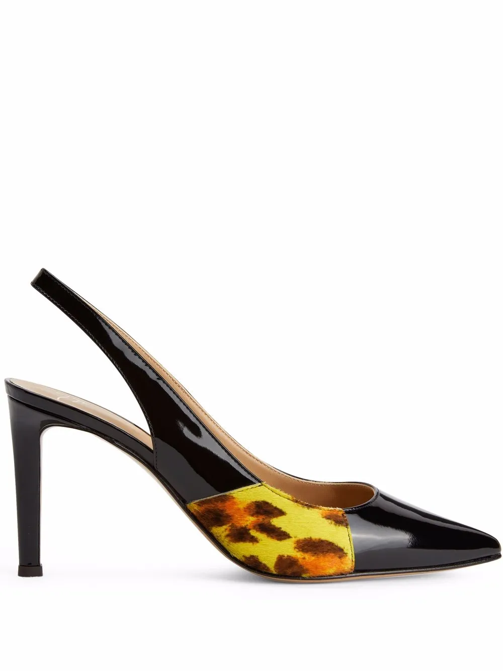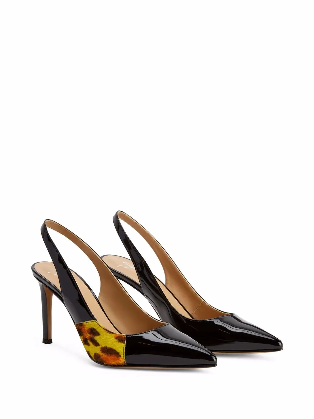 Giuseppe Zanotti charmed the fashion world with his visionary and always innovative approach. Made in Italy, these Susie Feline pumps stand out thanks to their leopard print inserts and high shine finish.